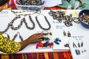 The market day went beautifully, apart from being a learning session, it turned out to be a cultural amalgamation where the campus staff got to see the diversity of skill sets the women posses. The hand crafted items in the bazaar included jewelry made from beads and sea shells, woolen items such as caps, socks, mobile pouches, traditional tapa paintings, tiaras, embroidered handkerchiefs, crochet items, hair accessories and weaved baskets. The food items included momos, assorted nuts and coloured popcorn.