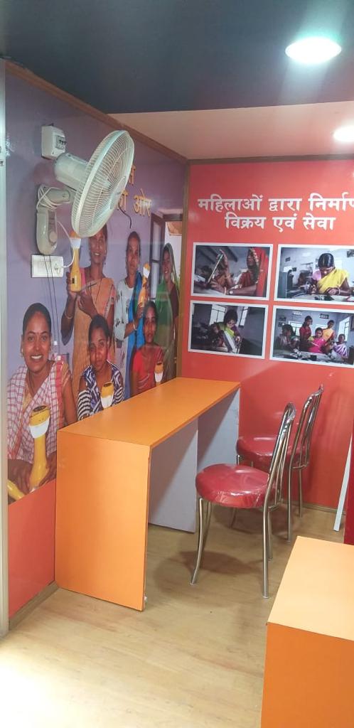 The REW Portable Sales Containers have 3 sections, which include a display section where customers can inspect the quality of products in person, view the latest product designs and test their brightness before purchasing. This includes a lamp/torch testing in the Dark Room, attached to the display section. The third section is the REW, led by our trained Women Solar Engineers. It’s here that customers can have their products repaired or acquire spare parts as required.